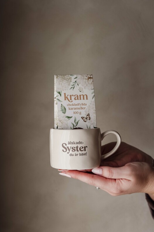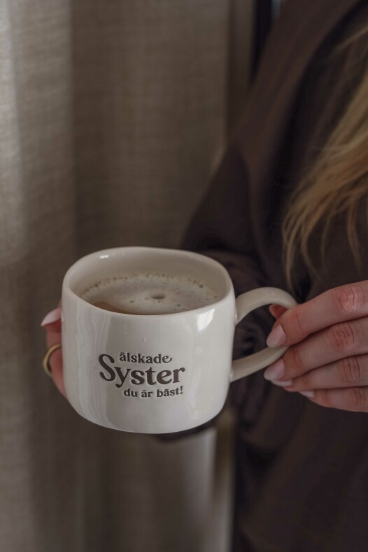 Ljuvlig vit mugg med präglad text: älskade syster du är bäst!