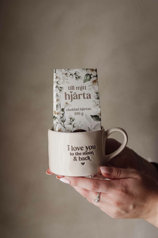 Ljuvlig mugg med präglad text: I love you to the moon and back