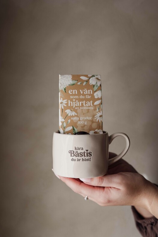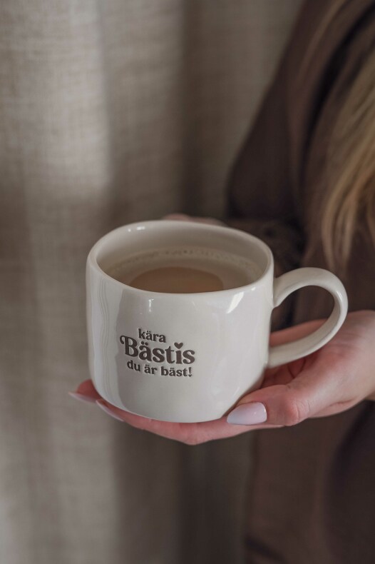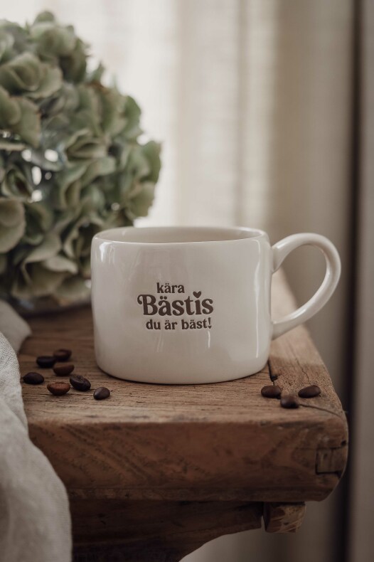 Ljuvlig mugg med präglad text: Kära Bäsis du är bäst!