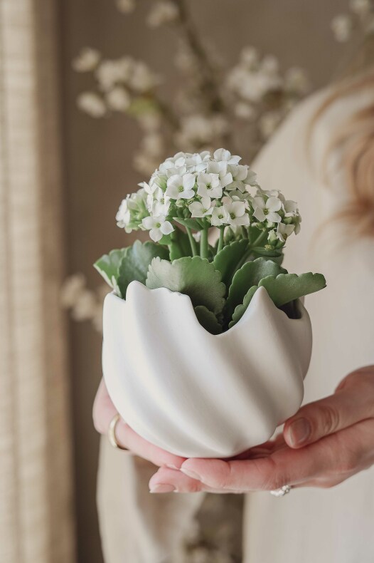 En underbar vit matt handgjord skål / lykta från Majas Cottage.