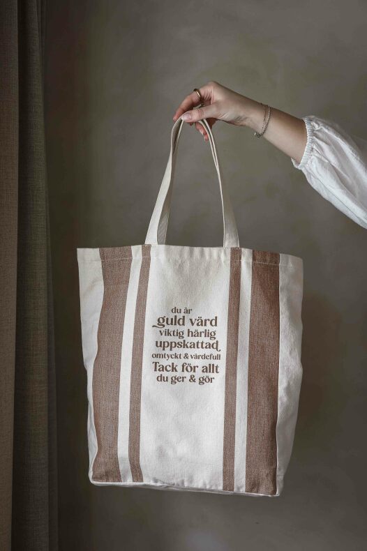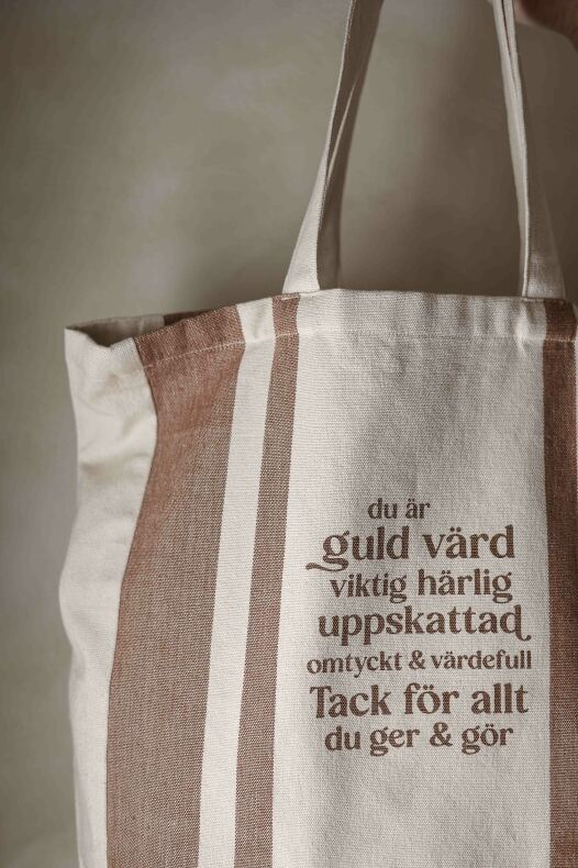 Majas shoppingpåse 100% fin bomullskvalitet med mysiga färger av Sand och Kanel