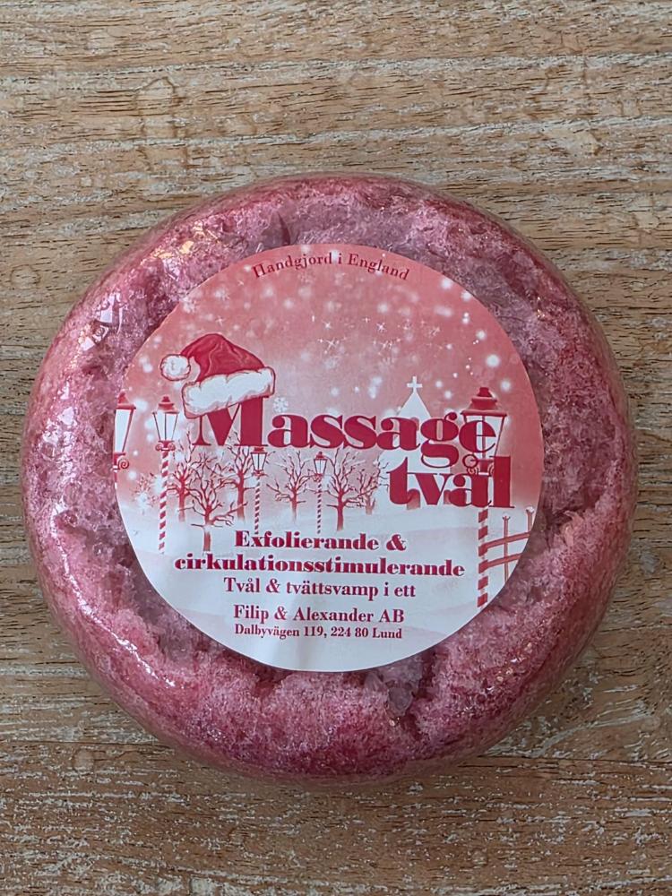 Massagetvål - med tvättsvamp som bas, där tvättsvampen ger känslan av extra rengörande och cirkulationsstimmulerande