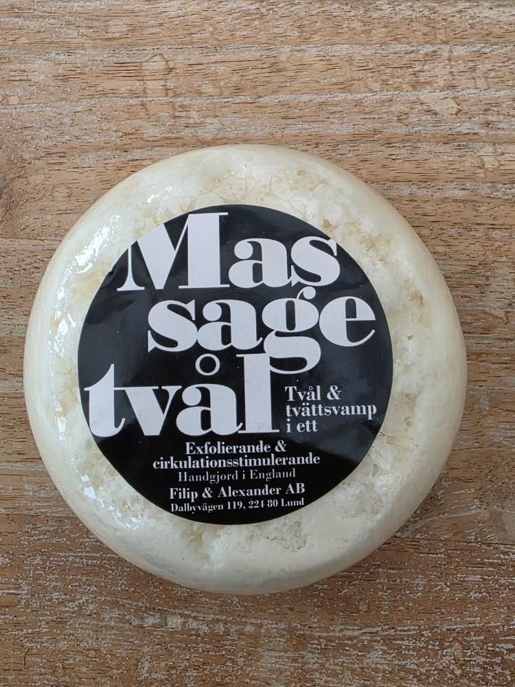 Massagetvål - med tvättsvamp som bas, där tvättsvampen ger känslan av extra rengörande och cirkulationsstimmulerande