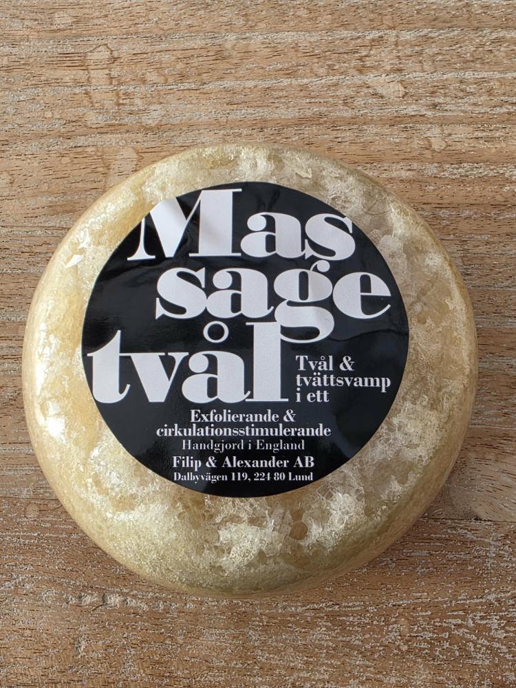 Massagetvål - med tvättsvamp som bas, där tvättsvampen ger känslan av extra rengörande och cirkulationsstimmulerande