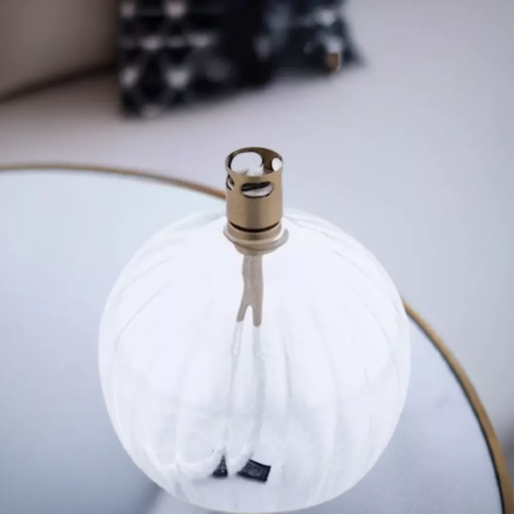 Denna runda oljelampa från Peri Living kombinerar klassisk design med en modern touch. Det rillade klarglaset skapar en vacker ljusreflektion och ger lampan en unik karaktär. Den mässingsfärgade vekhållaren bidrar till en varm och exklusiv känsla, vilket gör lampan till en tidlös inredningsdetalj.
