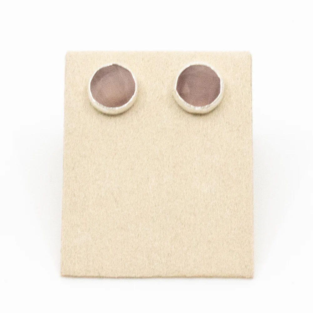Små enkla, men vackra, örhängen; Rosa sten infattad i silverplätering - ett gediget hantverk.