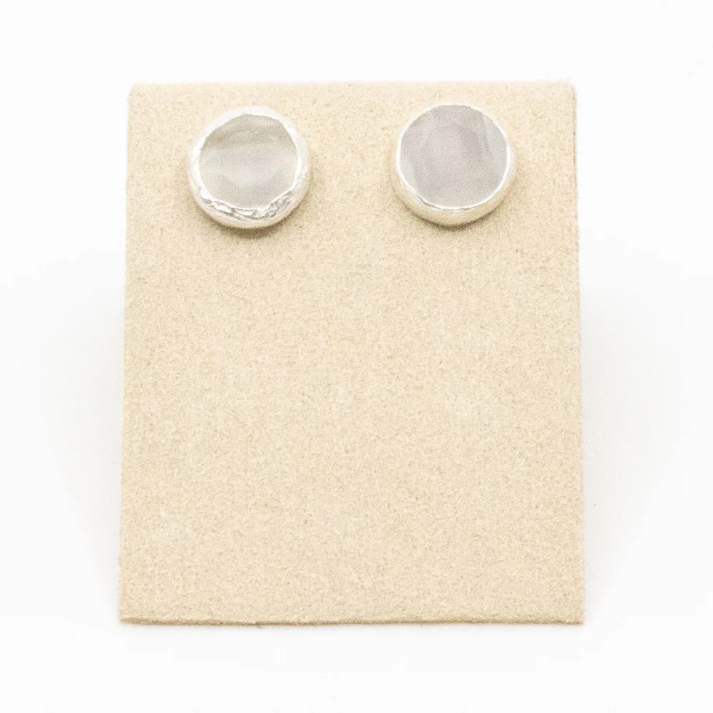 Små enkla, men vackra, örhängen; Vit sten infattad i silverplätering - ett gediget hantverk.
