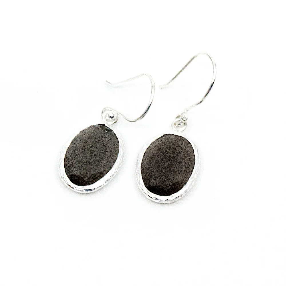 Vackra örhängen; Mörkgrå sten infattad i silverplätering - ett gediget hantverk.