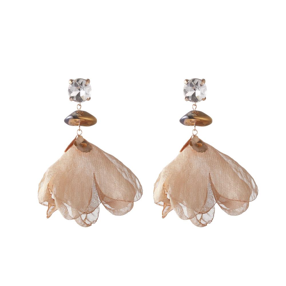 Örhängen, Klar sten med böljande sandfärgad blomma - Gemini