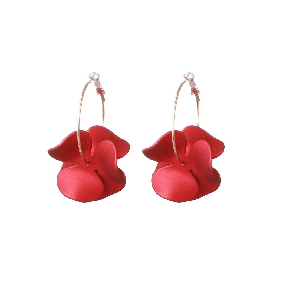 Örhängen, Guldfärgad ring med röd blomma - Gemini