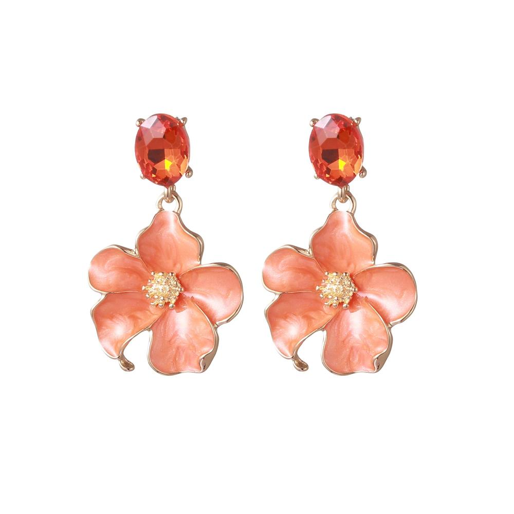 Somriga örhängen med en orange blomma med guldfärgade detaljer