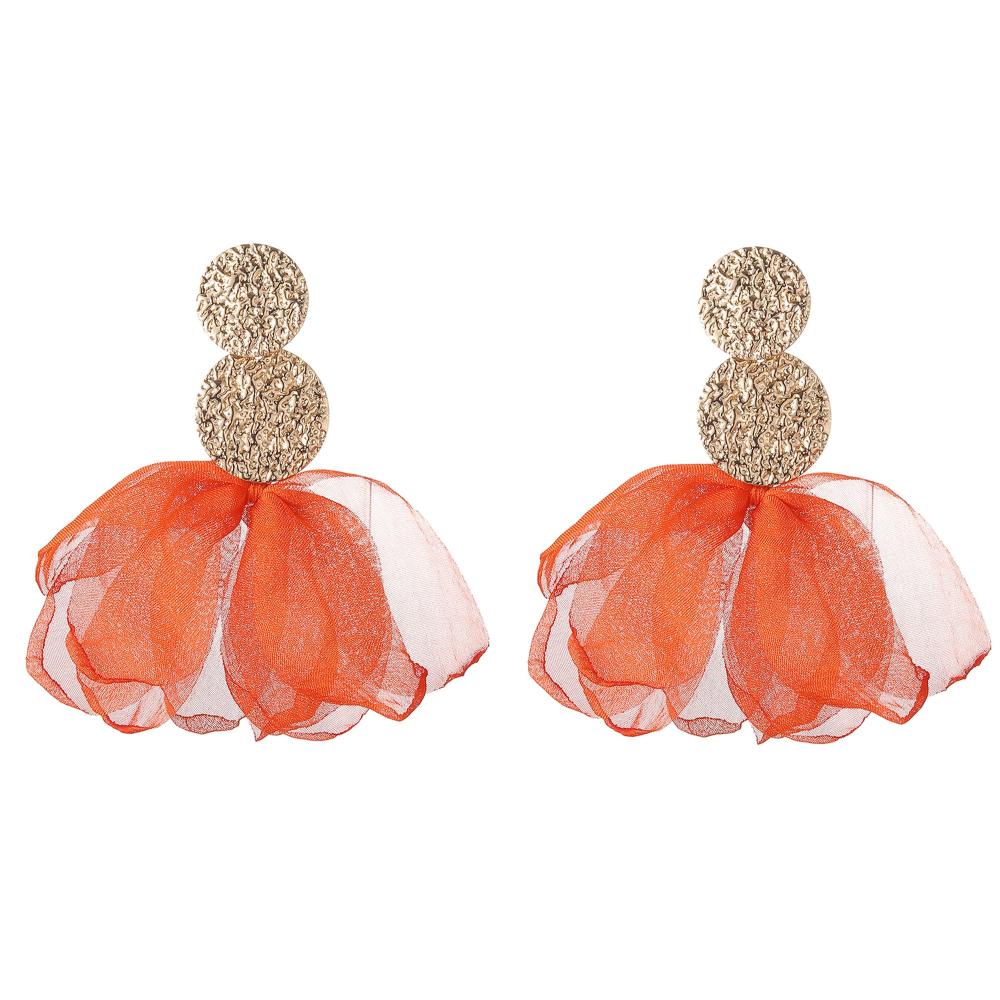 Örhängen, Orange tyll i guldfästen med struktur - Gemini