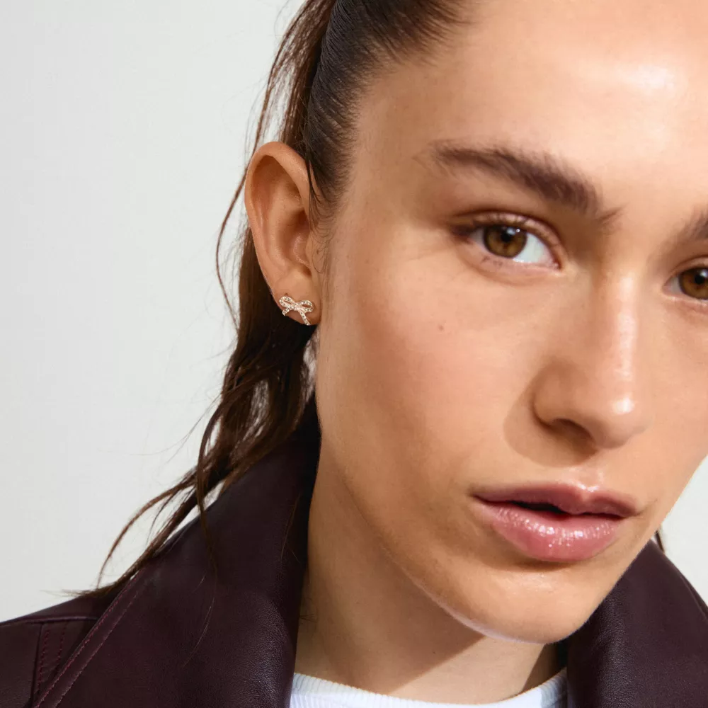 Festliga rosett-örhängen i "silver" med små preciosa kristaller.