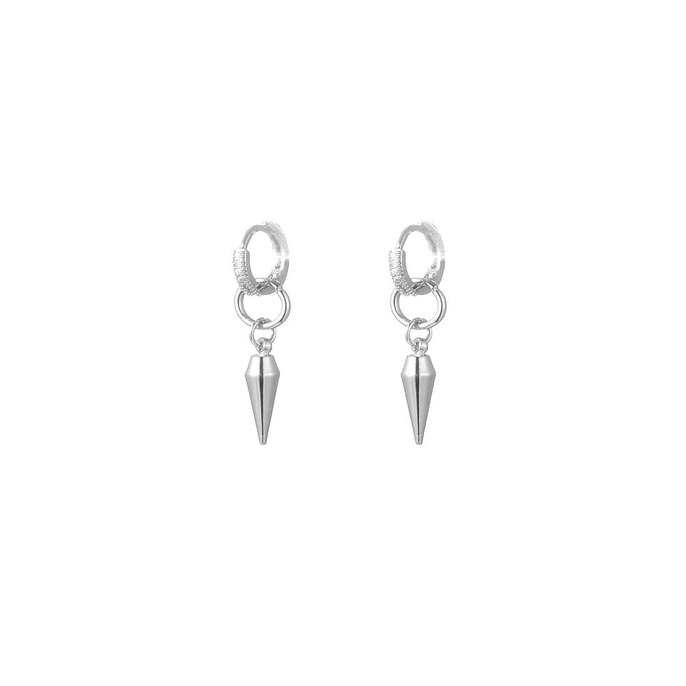 Silverfärgade örhängen, där strassen i ringen ger känslan av en feminin och romantisk touch, samtidigt som spetsen längst ner andas en modern och edgy look.