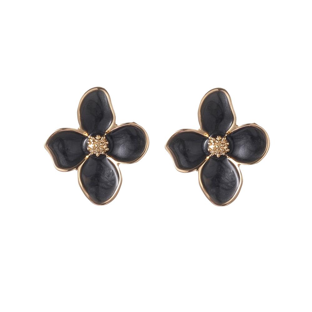 Festliga örhängen med en svart blomma med guldfärgade detaljer