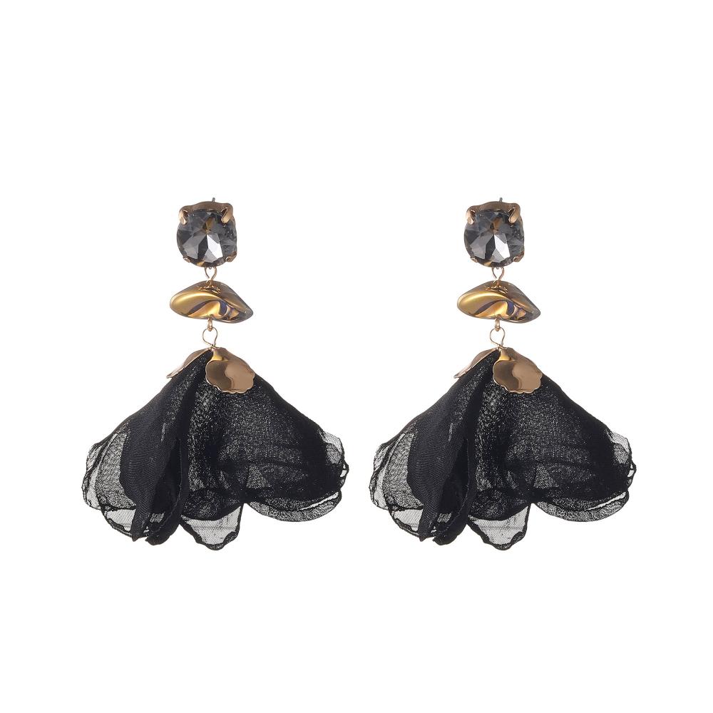 Örhängen, Svart sten med svart böljande blomma - Gemini