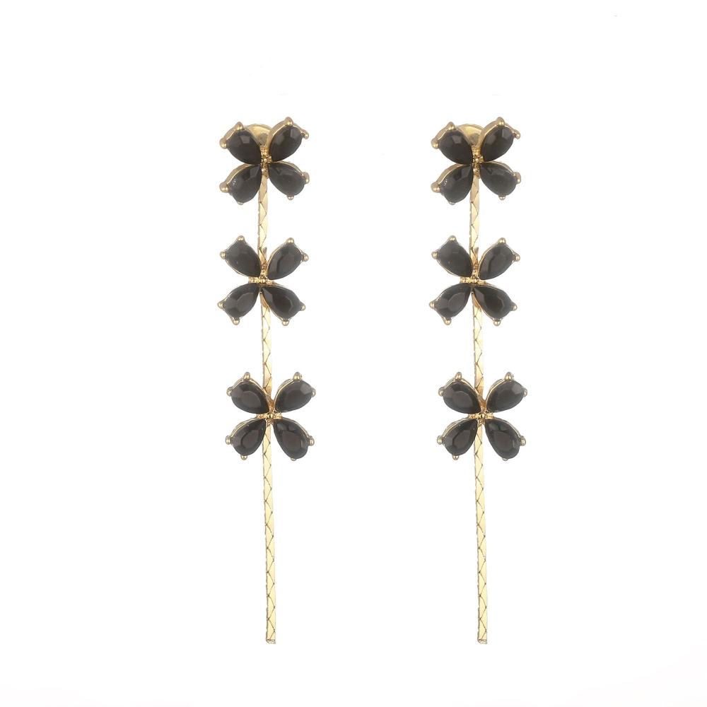 Sätt en elegant touch på outfiten med dessa örhängen, guldfärgad länk med 3 blommor med svarta stenar.