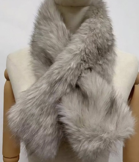Snygg taupe halsduk i fejkpäls att lägga om halsen (fästes genom att man sticker in den ena delen i den andra).