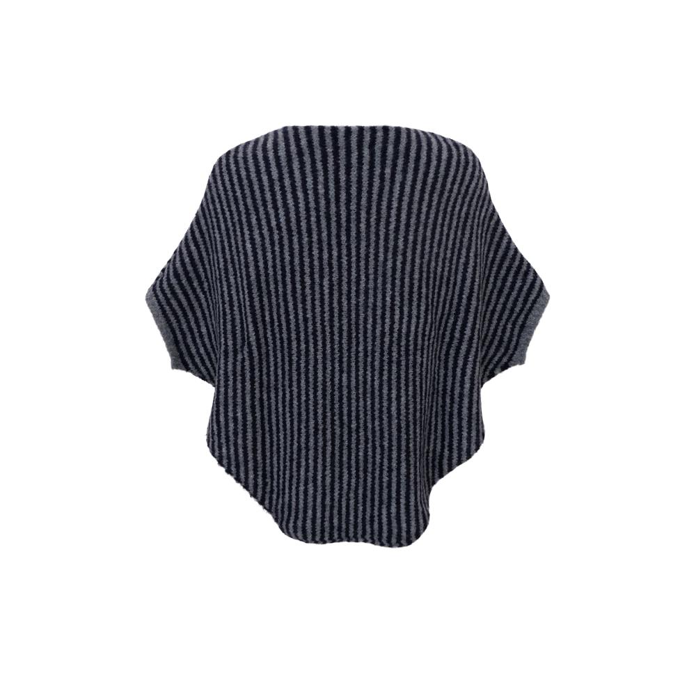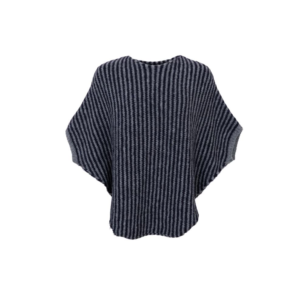 Poncho, Stickad Randig i Marin / Grå, Pella - Black Colour
