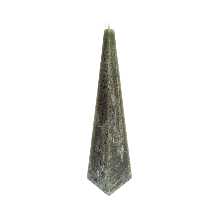 Handgjort genomfärgat pyramidljus med en rustik finish.