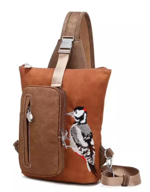 Ryggsäck / slingbag med hackspett – smart, säker och lekfull design