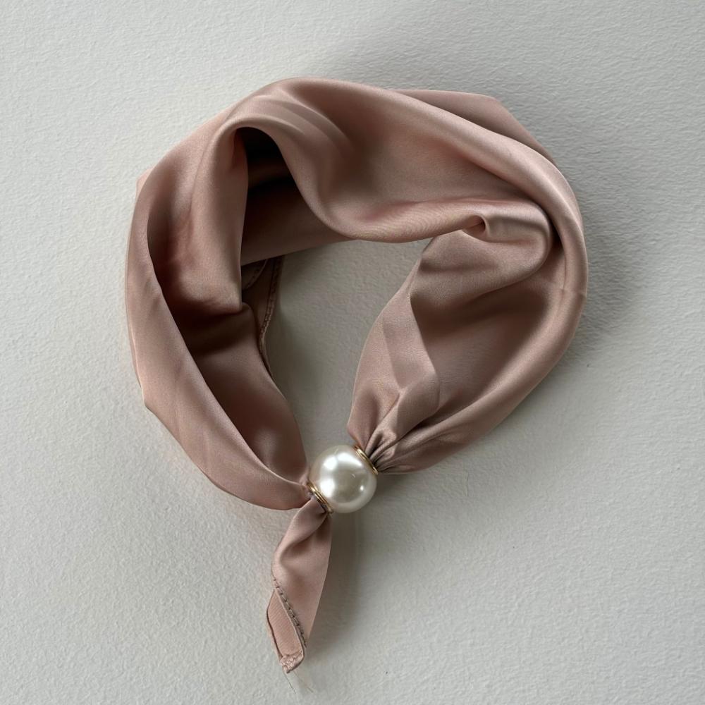 Elegant scarf, enfärgad taupe med en stor pärla att knäppa fast scarfen med