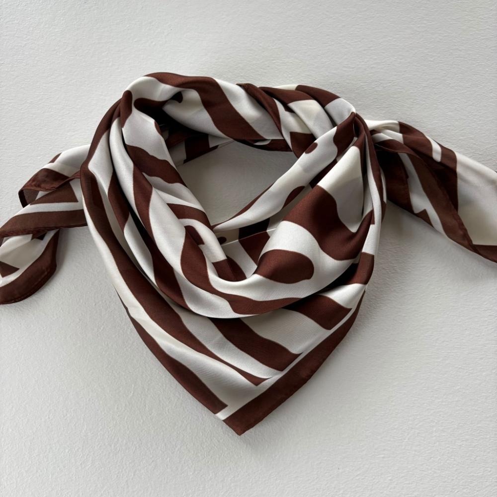 Scarves, Randig Brun / Vit (70x70 cm) - Three M