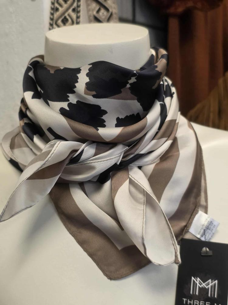 Scarves Creme / Svart / Kamel (70x70 cm) - Three M
