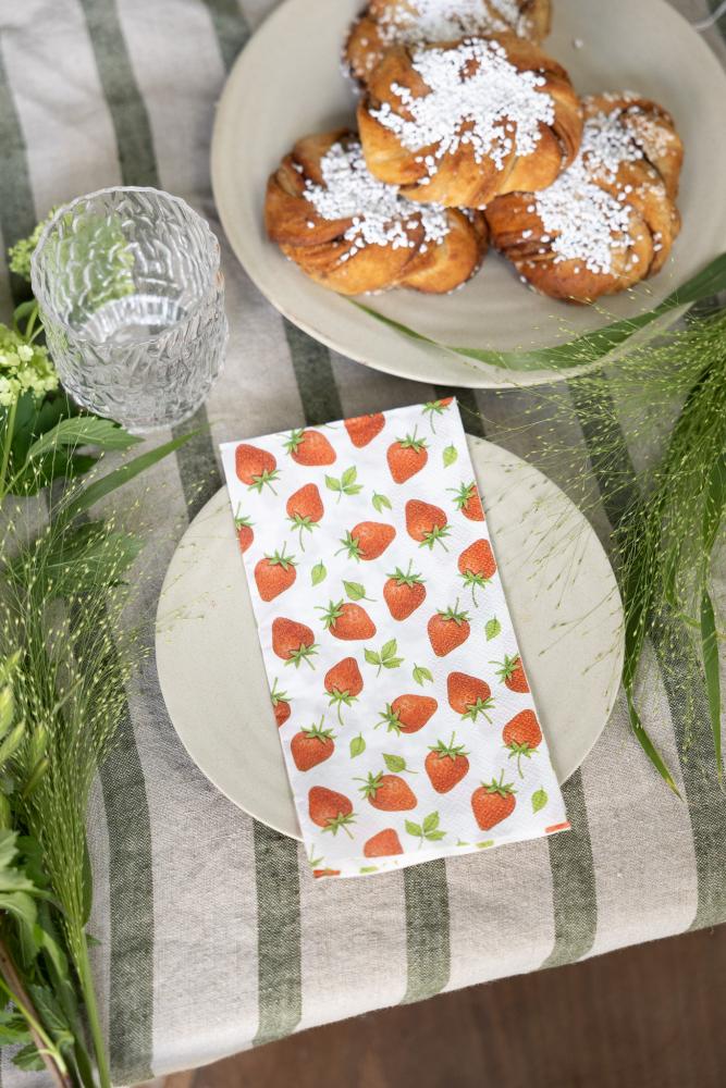 Pappersservett med härligt motiv av solmogna jordgubbar