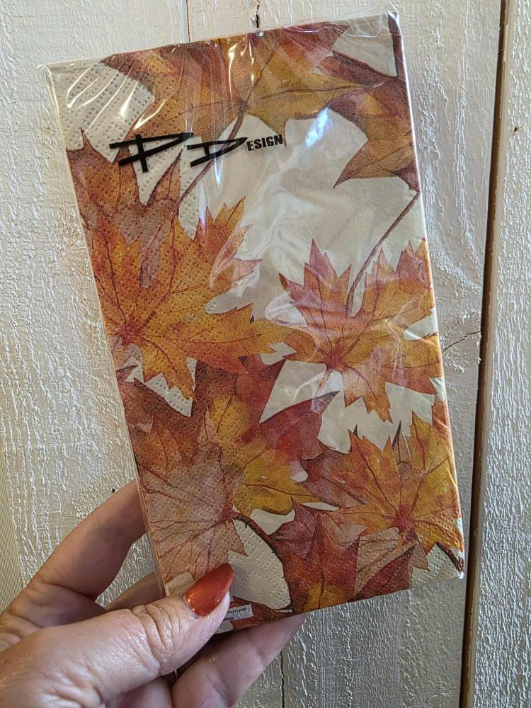 Servett i bufféformat med motiv av olika lönnlöv i höstsköna toner