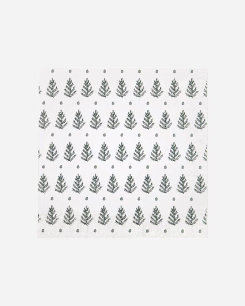 Vita servetter med gröna granar, kompletterar din dukning hela vägen fram till jul.