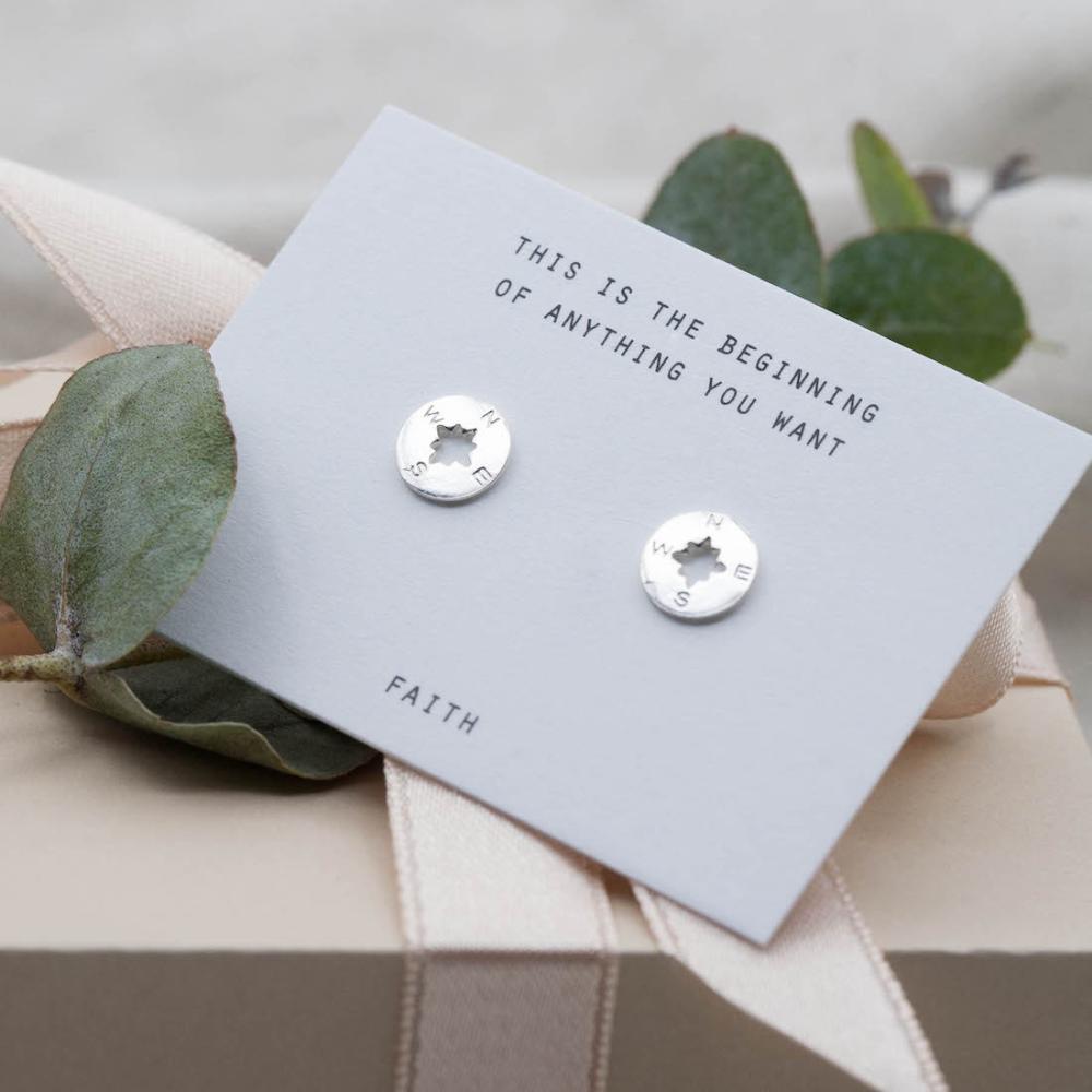 Nyckelord: silverörhängen, kompassörhängen, by faith, äkta silver, nickelfria örhängen, inspirerande smycken