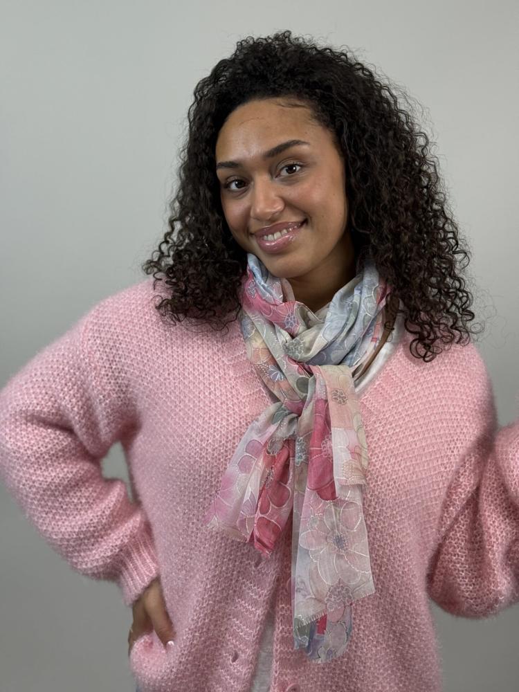 Härlig tunn scarf med blommor i härliga lite pastelliga toner