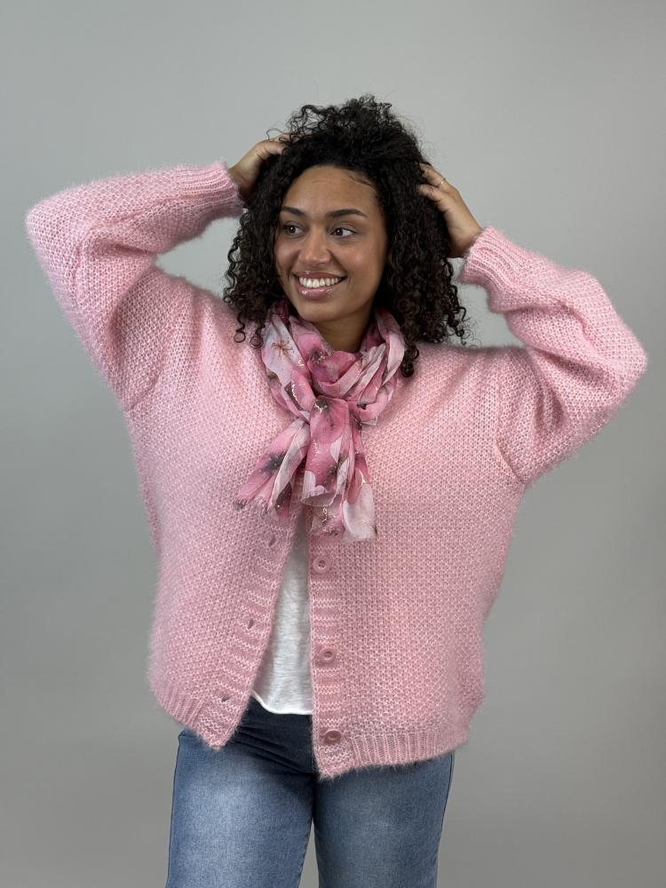 Härlig tunn scarf, stora blommor i olika rosa nyanser