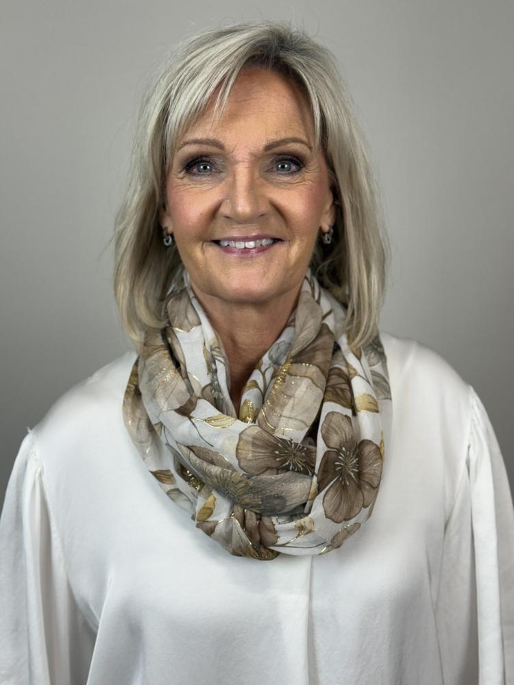 Fräsch scarf i beige och bruna toner med festliga inslag av guld
