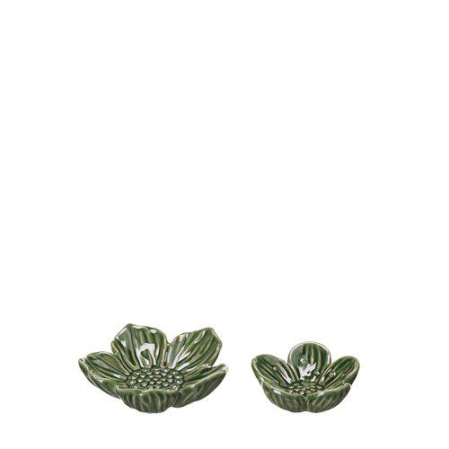 Dekorativ skål i form av en blomma med gröna kronblad, finns i 2 olika storlekar/modeller.