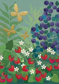 Smultron, blåbär & fjärilar, Dubbelt kort - Pictura