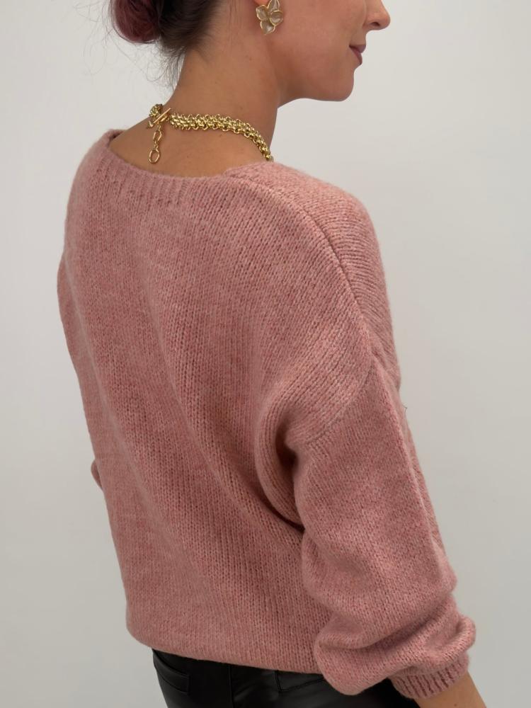 Fin rosa stickad v-ringad kofta med fina guldknappar - som sätter hela looken. Mjuk och härlig passform, gör den lika perfekt att bära öppen - som stängd.