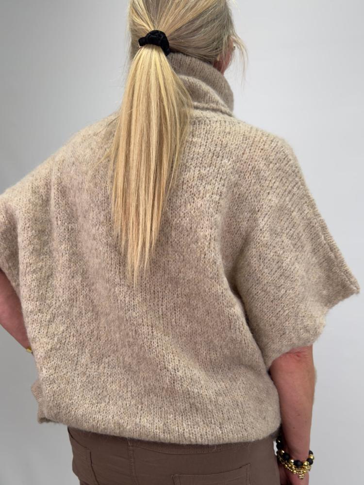 Fin stickad beige polotröja utan ärm. Lika snygg över skjortan eller meshtoppen - som att bära ensam.