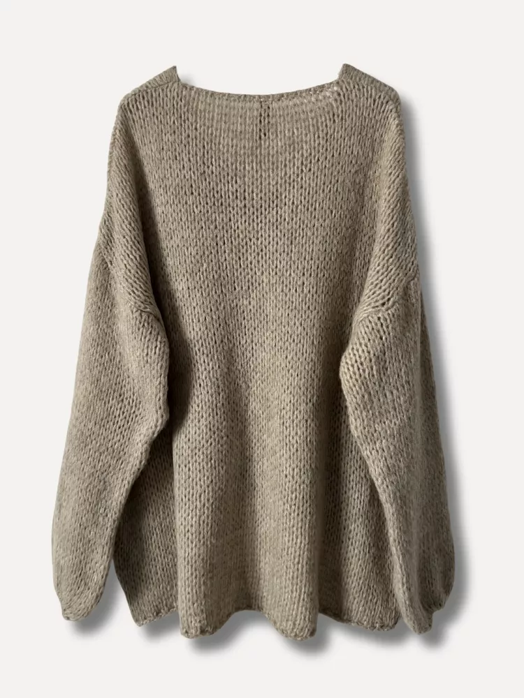 En sandfärgad mjuk stickad tröja med det lilla extra. En bästsäljande modell genom åren i ny design - Onesize