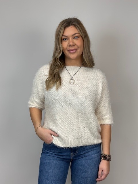 En mjuk och härlig stickad tröja med båthals och 3/4-ärm – den perfekta kombinationen av avslappnad och elegant. Den har en lätt lyster som ger plagget det där lilla extra, och fungerar lika bra till jeans som till kjol eller skinnbyxa. En tidlös stickad tröja som lyfter vardagslooken och känns lika rätt till festligare tillfällen.