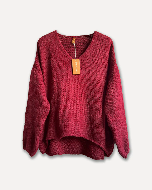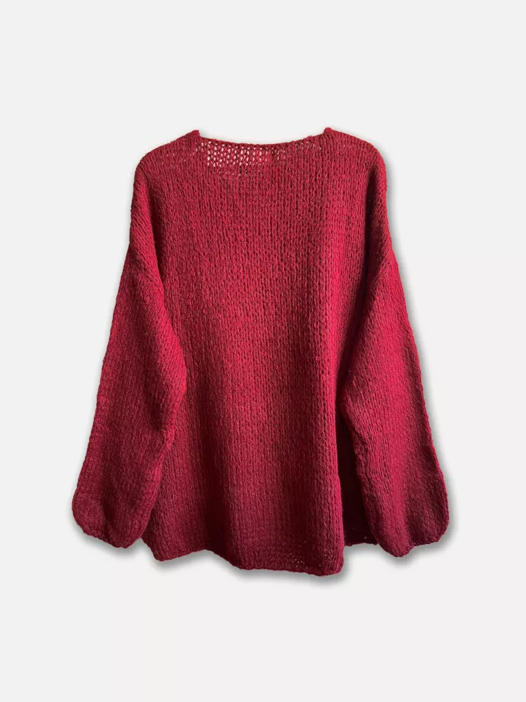 En vinröd mjuk stickad tröja med det lilla extra. En bästsäljande modell genom åren i ny design - Onesize