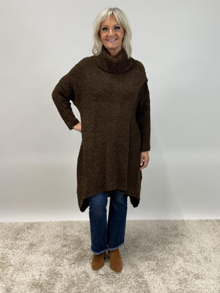 Melody är en lurvig långtröja med polokrage och med omlott fram.