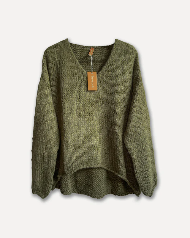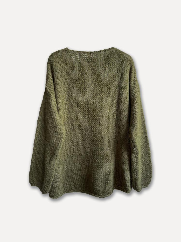 En skogsgrön mjuk stickad tröja med det lilla extra. En bästsäljande modell genom åren i ny design - Onesize