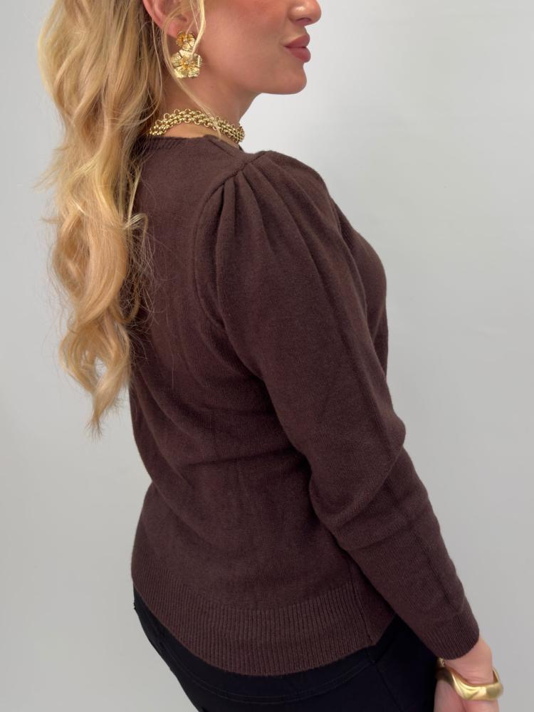 Stickad tröja med puffärm, Mörkbrun Elvy - Gemini