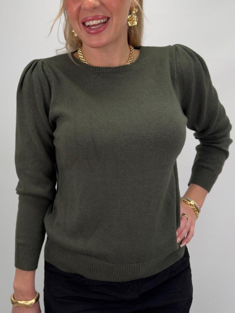 Stickad tröja med puffärm, Mörkgrön Elvy - Gemini