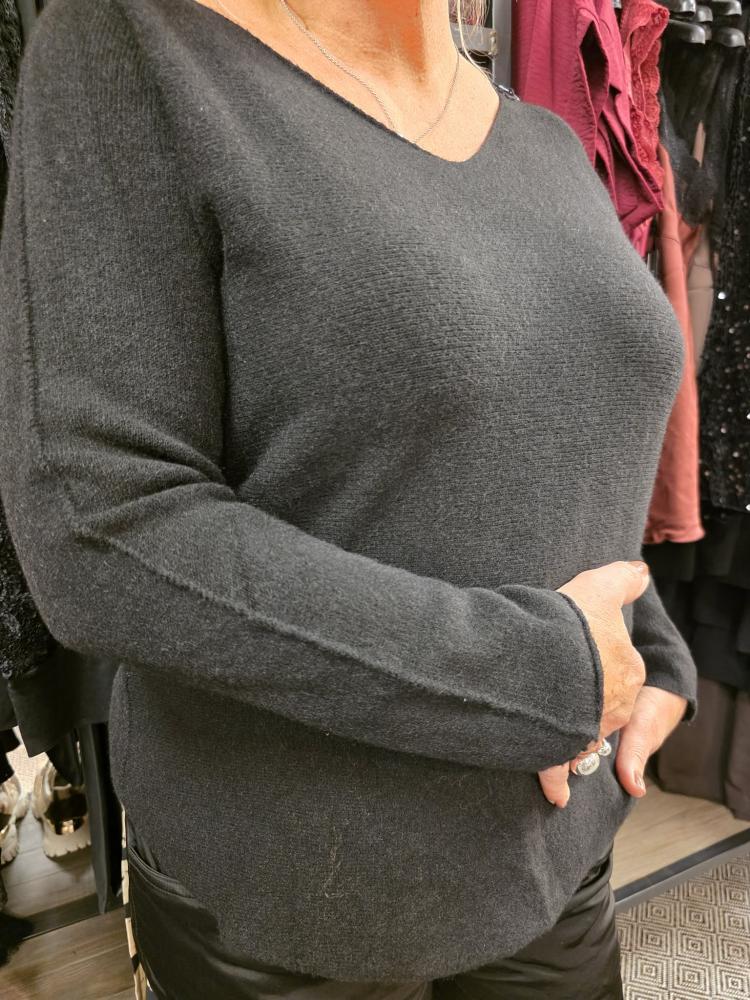Stickad tröja med v-hals, Svart Bella - Caramelle Fashion