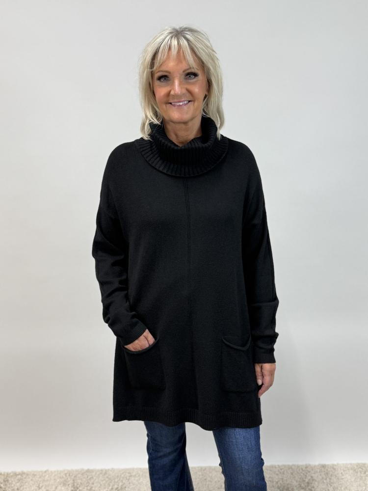 En mjuk och härlig stickad polotröja som snabbt blir en favorit i garderoben. Modellen har dekorativ söm både fram och bak samt praktiska fickor framtill som ger extra mysfaktor. Perfekt att bära både till vardags med leggings eller jeans, eller att klä upp med en kjol för en mer elegant look.