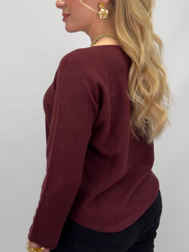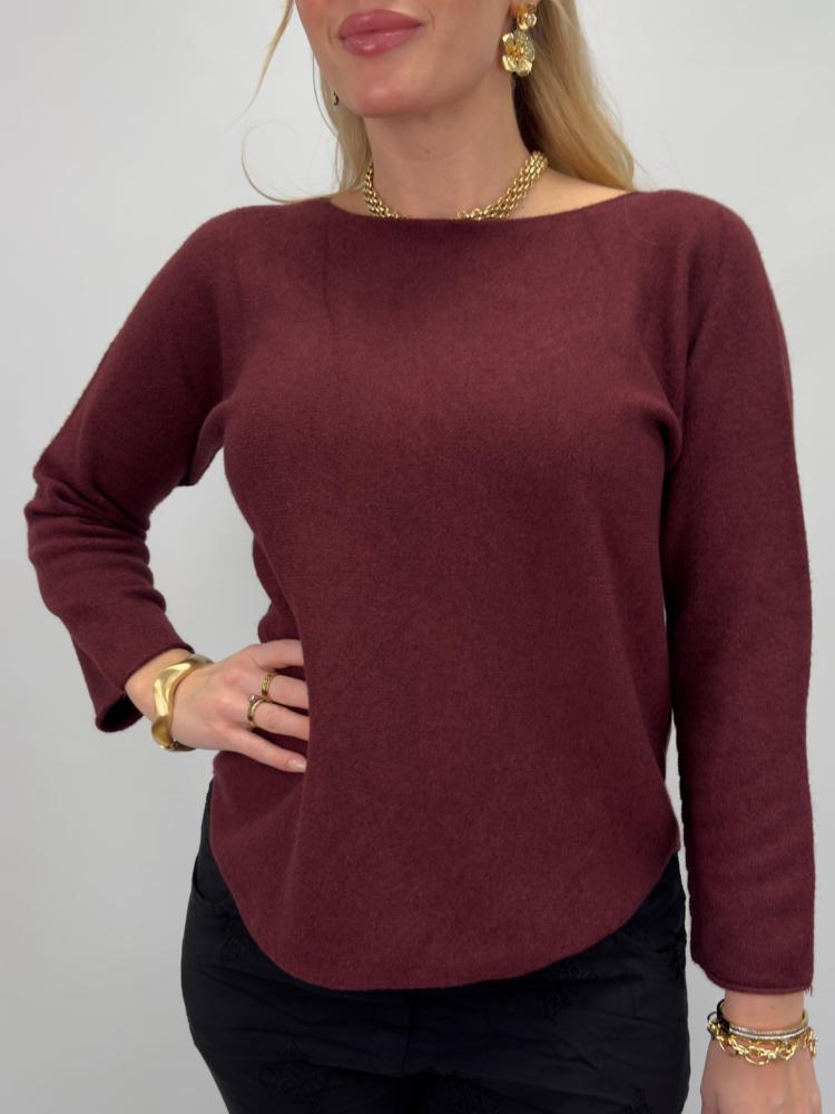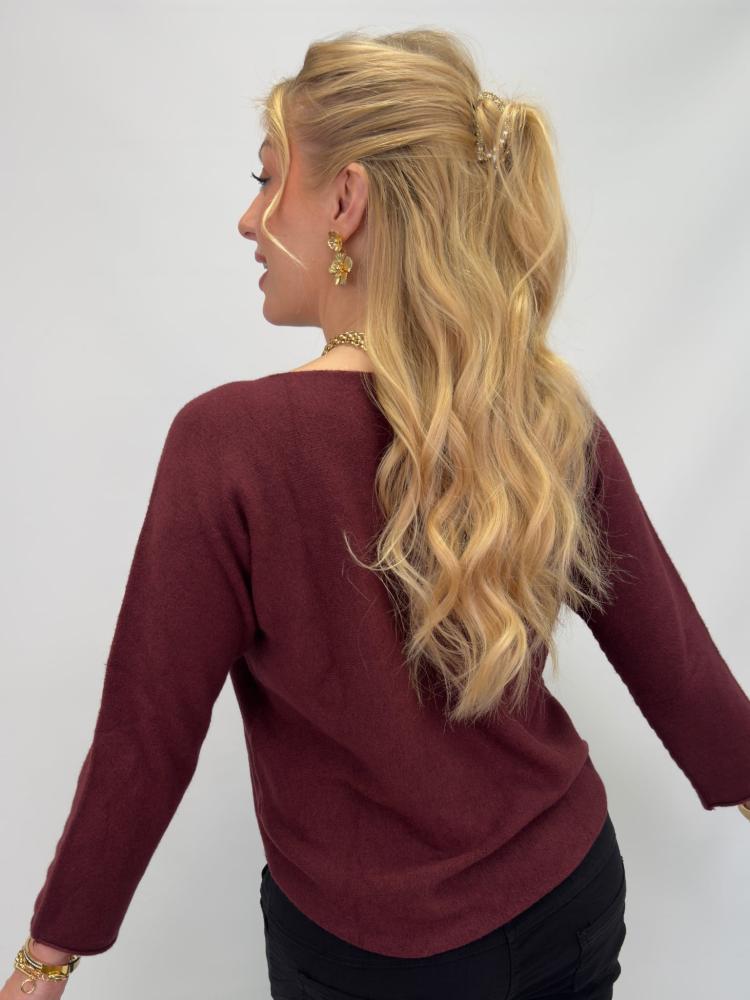 Vinröd stickad tröja med avslappnad passform. En tröja som du enkelt klär upp eller ner - säsong efter säsong.