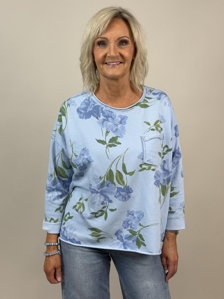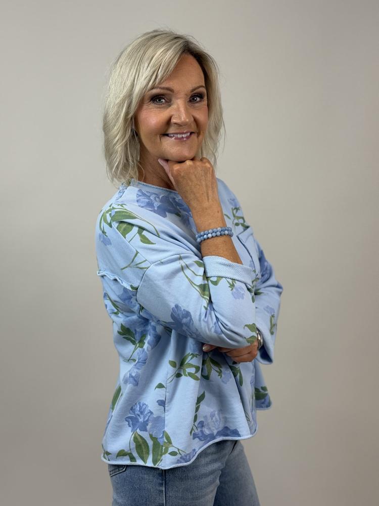 Sweatshirt Ljusblå Blom, Sally - Mix by Heart KOMMER SNART!